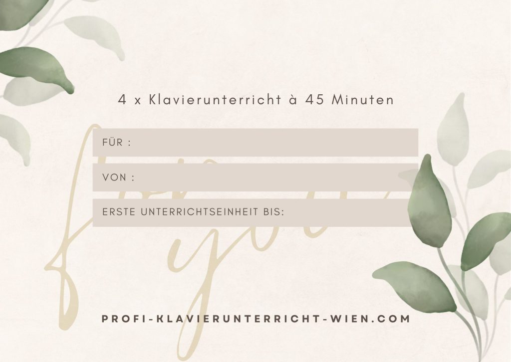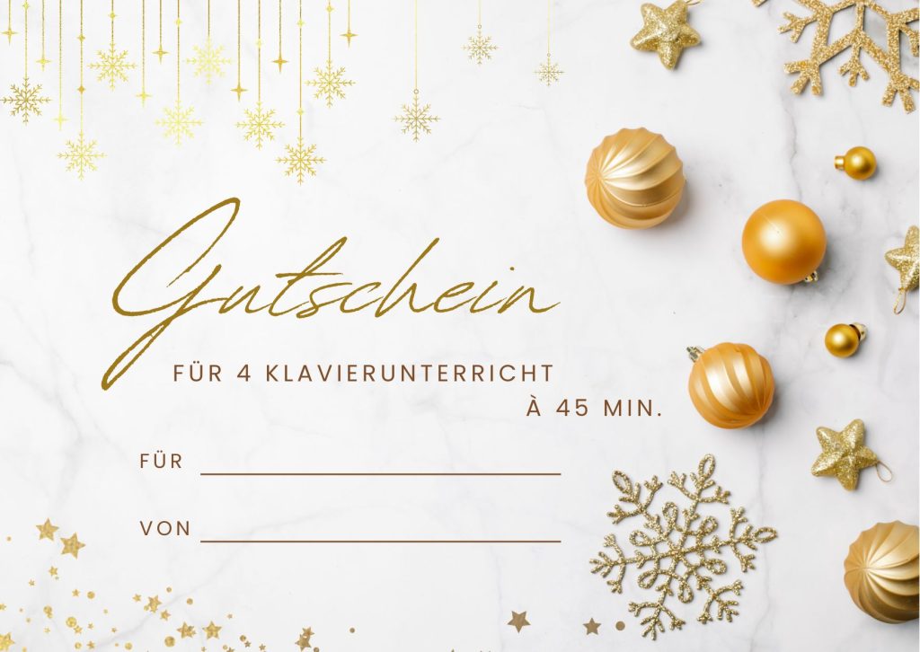 Schenke Musik, Freude und künstlerisches Wachstum: Mit unserem Gutschein für einen 4er- oder 8er-Block Klavierstunden erhält die beschenkte Person ein kompaktes Lernpaket – ideal für einen motivierenden Neustart, gezieltes Technik-Feintuning oder die Vorbereitung auf Auftritte und Prüfungen.